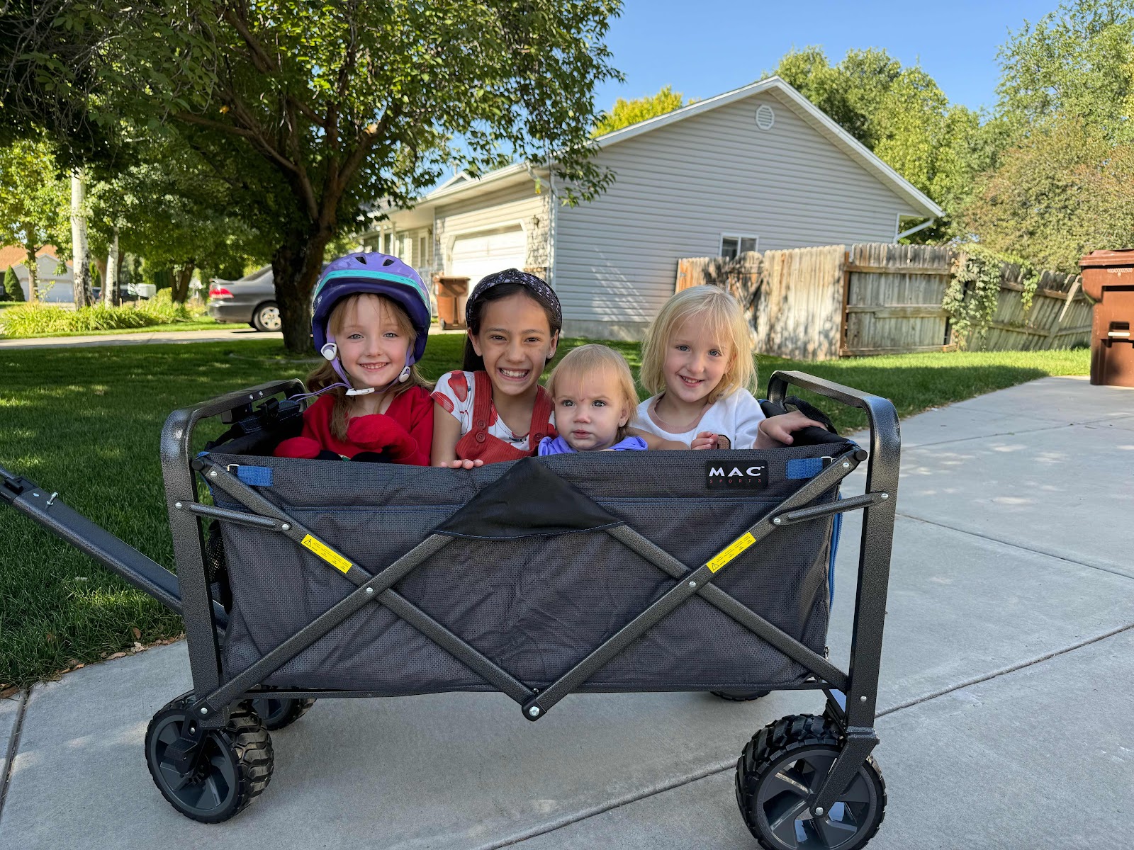 | This wagon from Costco is a win with these girls. |
